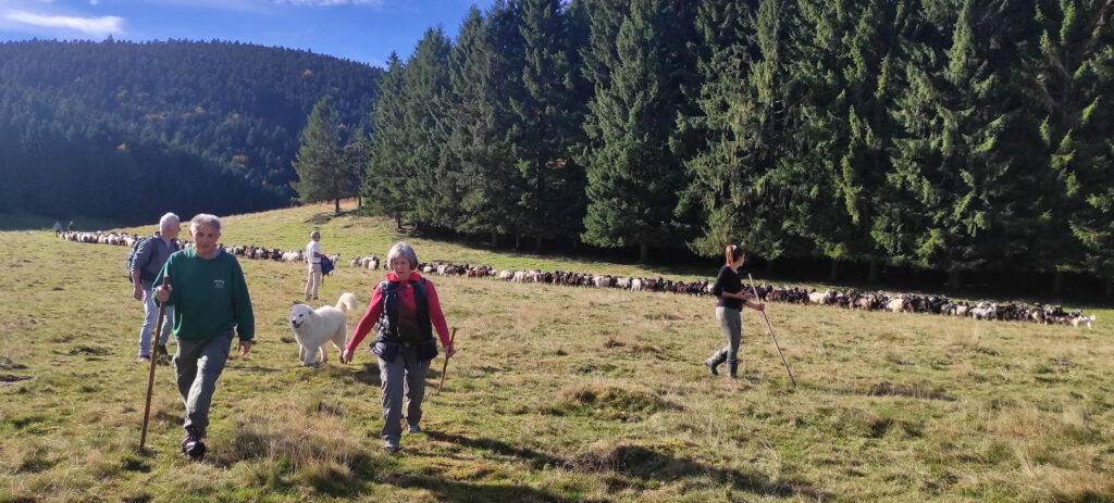 Notre participation a été très active , étant les seuls avec 3 de ses amis et sa fille a dirigé avec l’aide des chiens le troupeau.Sa femme Christine faisant la voiture balai afin de récupérer les animaux bléssés.